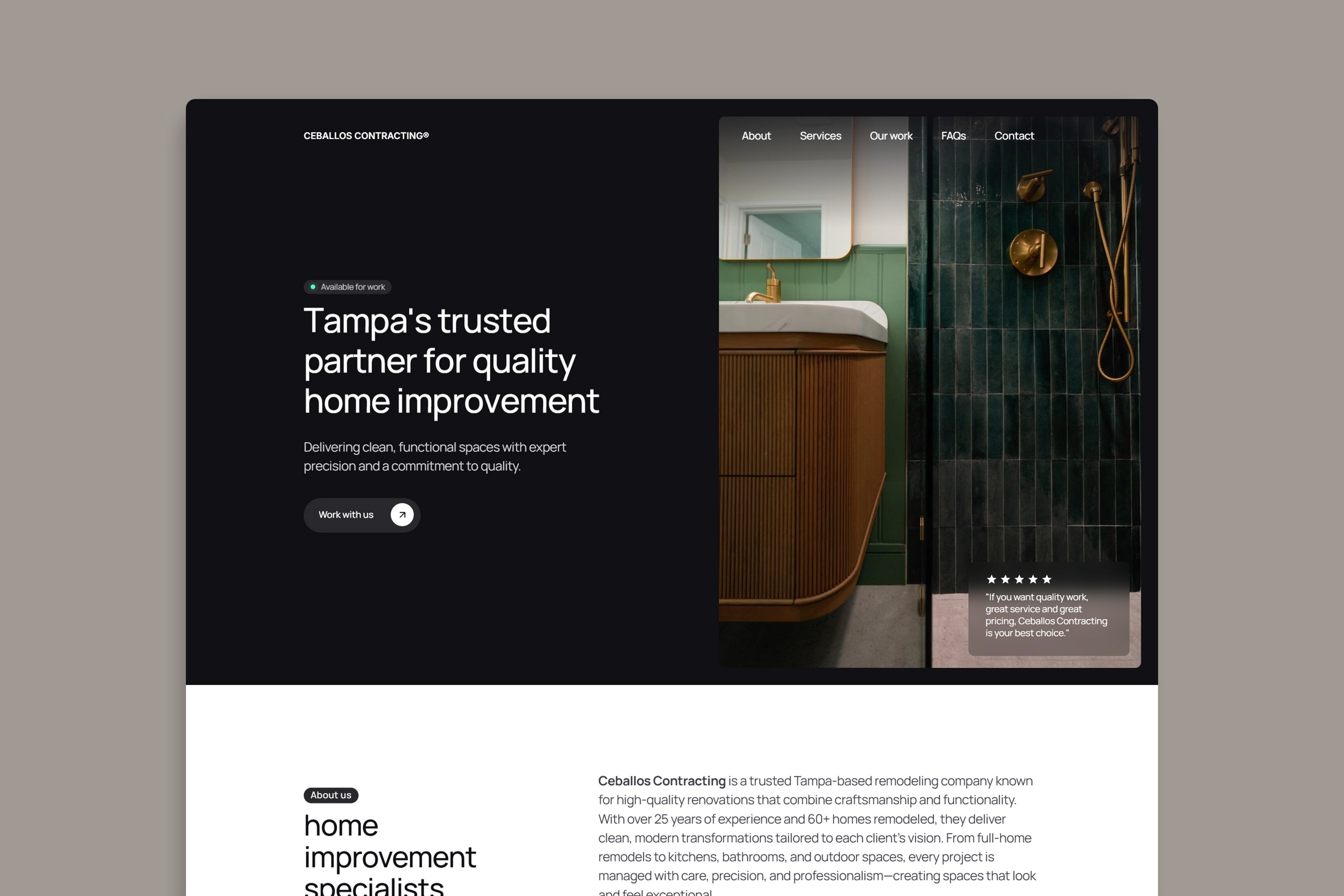Trusted Tampa-based remodeling company website built to showcase craftsmanship, credibility, and modern design.