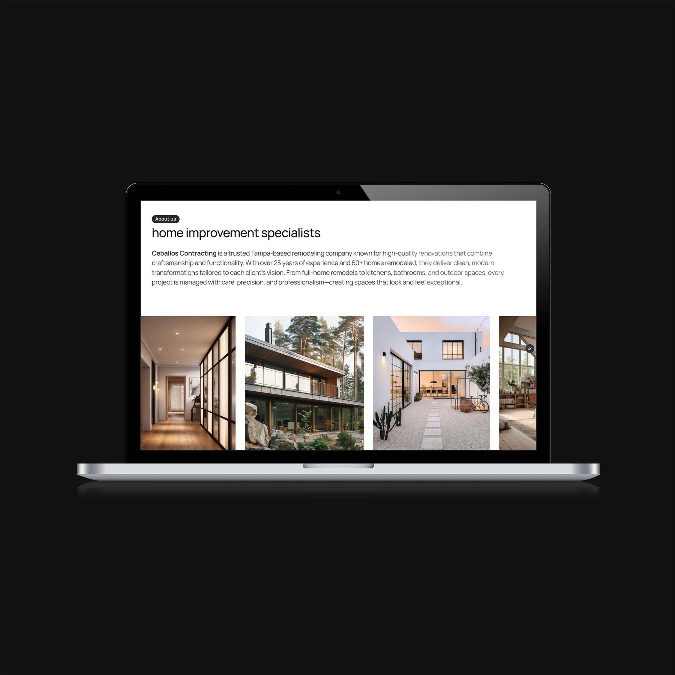 Ceballos Contracting needed a modern website that reflected decades of experience while differentiating them in a competitive remodeling market. The goal was to communicate trust, showcase real projects, and turn visitors into qualified leads.